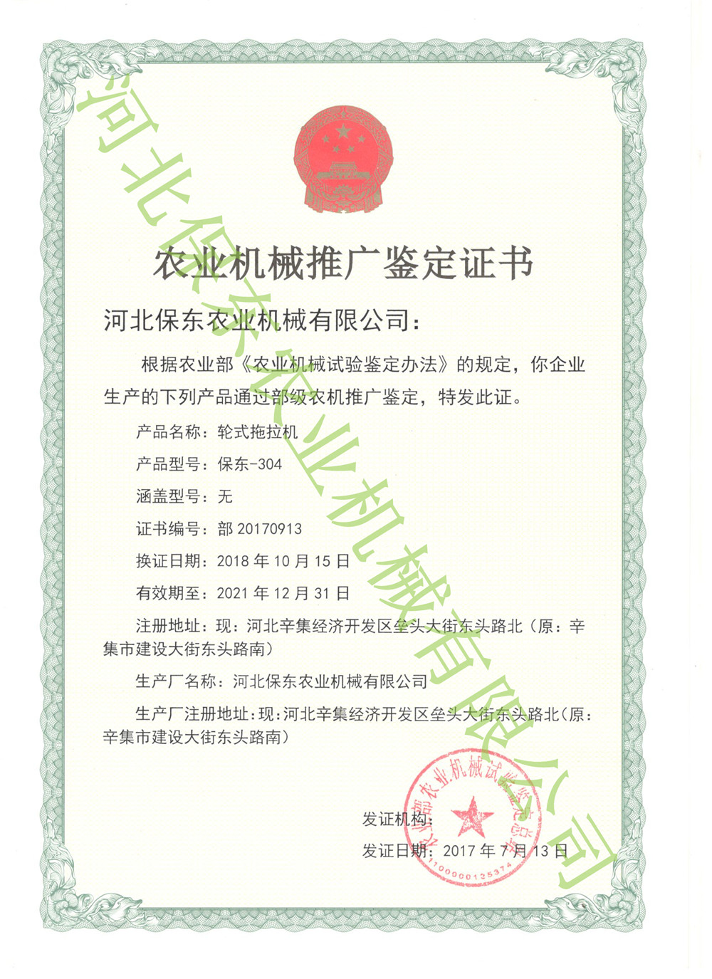 河北保东农业机械有限公司成立于2006年,坐落于“中国皮都”河北省辛集市,地理位置优越,来往交通便利。于2018年斥资3000万在辛集市省级技术开发区兴建新厂,建筑面积占地两万平方,并正式启用。同年被定为“2018辛集重点项目”,设有一套完整的装配流水线,并规范各项管理制度,从源头上保证了产品的质量、交货期和故障率。